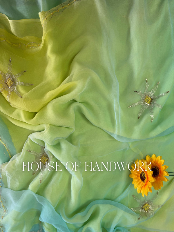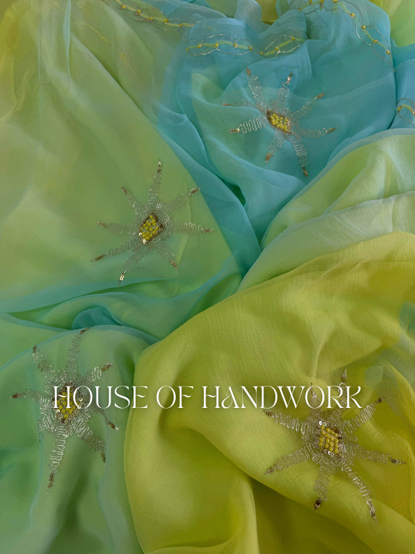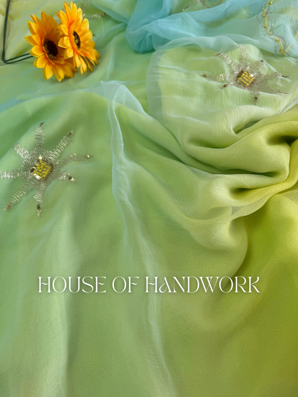 Aqua Glow Shaded Chiffon Saree