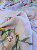 Graceful, dreamy, and full of charm — the Baby Pink Handpainted Saree is a masterpiece of elegance. Handcrafted with delicate brushstrokes, it features soft floral motifs in shades of pink and pastel hues that exude femininity and sophistication. The airy drape of chiffon paired with the gentle baby pink base creates a refreshing aura, making it the perfect choice for both day celebrations and evening soirees.