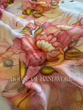 Color: Ivory base with hand-painted blush pink & peach lotus motifs
