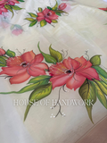 Color: Ivory base with coral-red floral motifs and green leaf accents