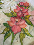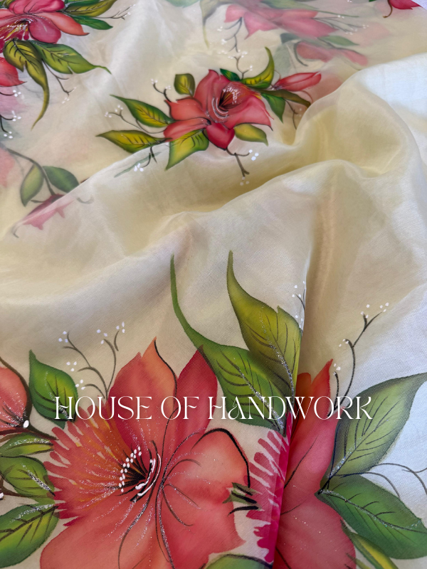 Coral Bloom Foil Work Hand Painted Saree