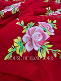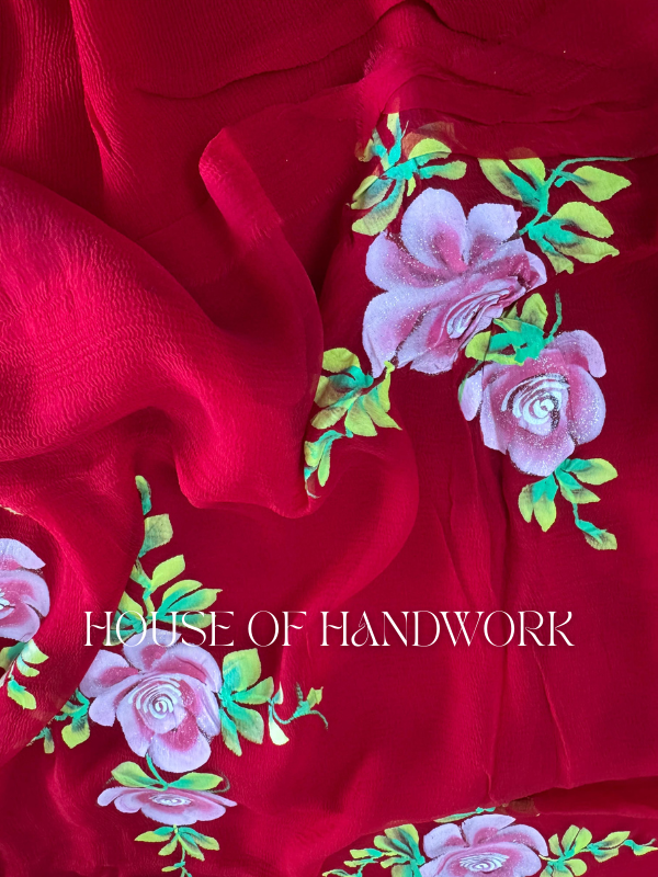 Crimson Rose Foil Work Hand Painted Saree