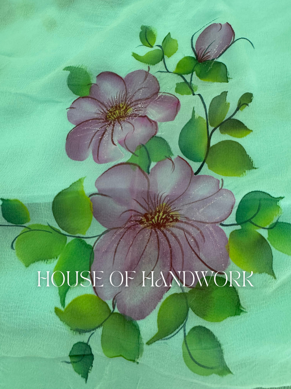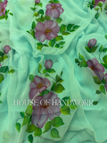 Garden Glow Foil Work Hand Painted Saree