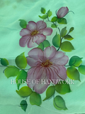 Work: Hand-painted floral design with foil shimmer highlights