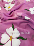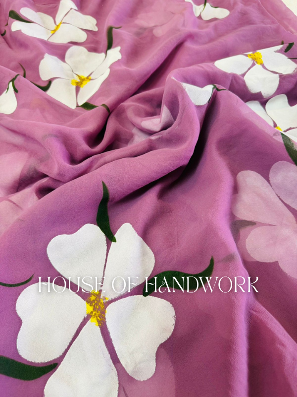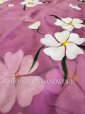 Immerse yourself in the dreamy elegance of the Lavender Blossom Handpainted Saree, a graceful creation that brings together artistry and sophistication. Adorned with hand-painted white blossoms across a soft lavender chiffon base, this saree reflects timeless beauty with a modern touch. The delicate strokes and soothing palette make it perfect for occasions where subtle charm and elegance are cherished.