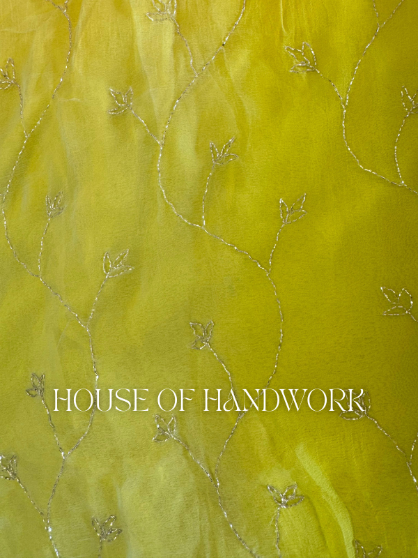 Step into radiance with the Luminous Lime Sequin Shaded Handwork Saree, a vibrant blend of tradition and contemporary charm. Designed in an eye-catching lime yellow shaded base, the saree is delicately embellished with subtle sequin hand embroidery, creating a graceful shimmer that enhances its elegance. The shaded effect adds depth and sophistication, making it a versatile choice for both daytime and evening celebrations.