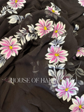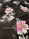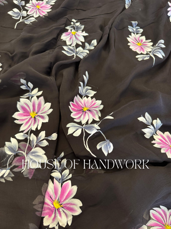 Midnight Bloom Foil Work Hand Painted Chiffon Saree