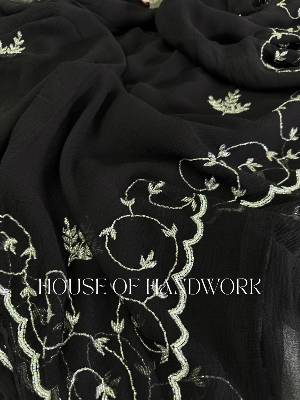 Embellishment: Handcrafted sequence embroidery with floral motifs