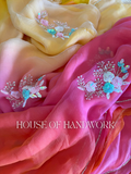 Made from airy, lightweight chiffon, it ensures effortless draping and all-day comfort. Perfect for festive gatherings, weddings, or evening celebrations, this saree combines pastel elegance with shimmering hand embellishments, making it a timeless addition to your wardrobe.