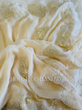 Step into timeless sophistication with our Pearl Elegance Gota Work Chiffon Saree, a drape that exudes grace and refinement. Crafted in lightweight chiffon, this saree features a serene ivory-cream base adorned with delicate golden gota embroidery in flowing leaf motifs. The subtle sheen of the fabric paired with intricate handwork creates a look that is both minimal and regal — perfect for weddings, festive celebrations, and elegant evening occasions.