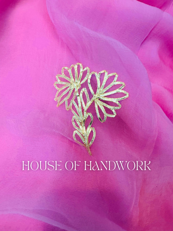 Embellishment: Handcrafted golden gota embroidery with floral motifs
