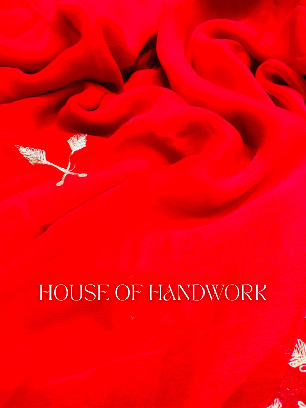 Turn every occasion into a regal celebration with the timeless charm of our Red Elegance Gota Handwork Saree. Crafted on a radiant red base, this saree is adorned with intricate gota embroidery, where traditional handwork artistry meets refined elegance.