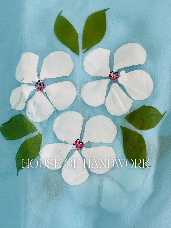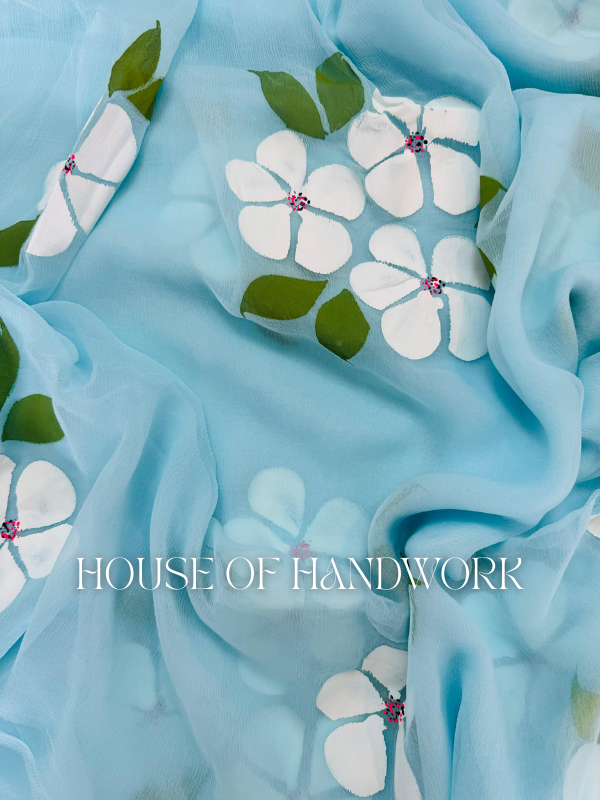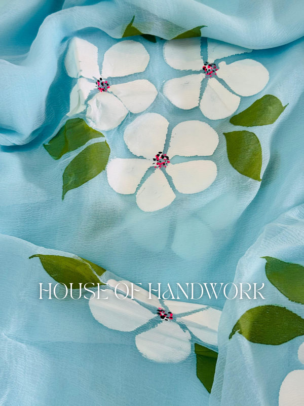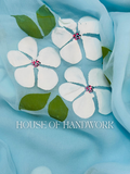 Sky Blossom Hand Painted Chiffon Saree