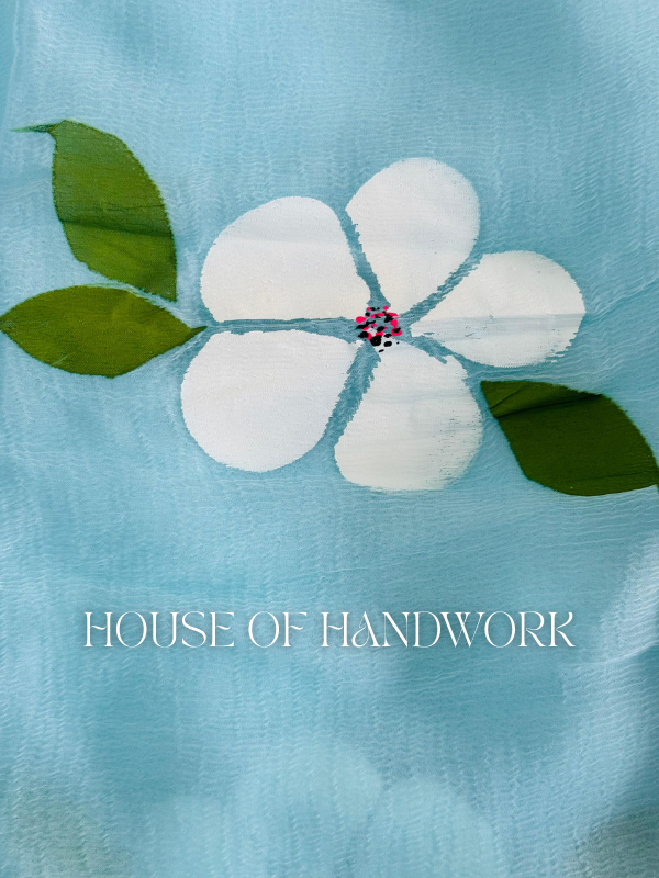 Color: Sky blue base with white floral hand paintings